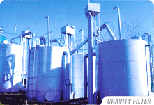 Gravity filter filters raw water, which is
